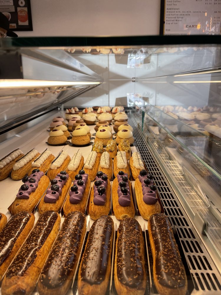 Walking into Petit Chou in New York City, you are welcomed by a charming atmosphere and a wide array of French pastries and desserts. The menu features savory specialties like the Breakfast Croisandwich and sweet treats like the Pistachio Danish and Homemade Viennoiserie. Customers rave about the creative flavors and technical perfection of the pastries. Highlights include the chocolate croissant, guava cheesecake danish, and double chocolate pistachio danish. The cozy space offers limited seating but attentive customer service. Prices are reasonable, and the quality of the treats is exceptional. Whether you're looking for a quick breakfast croissant or a decadent dessert, Petit Chou is a must-visit spot for pastry lovers.