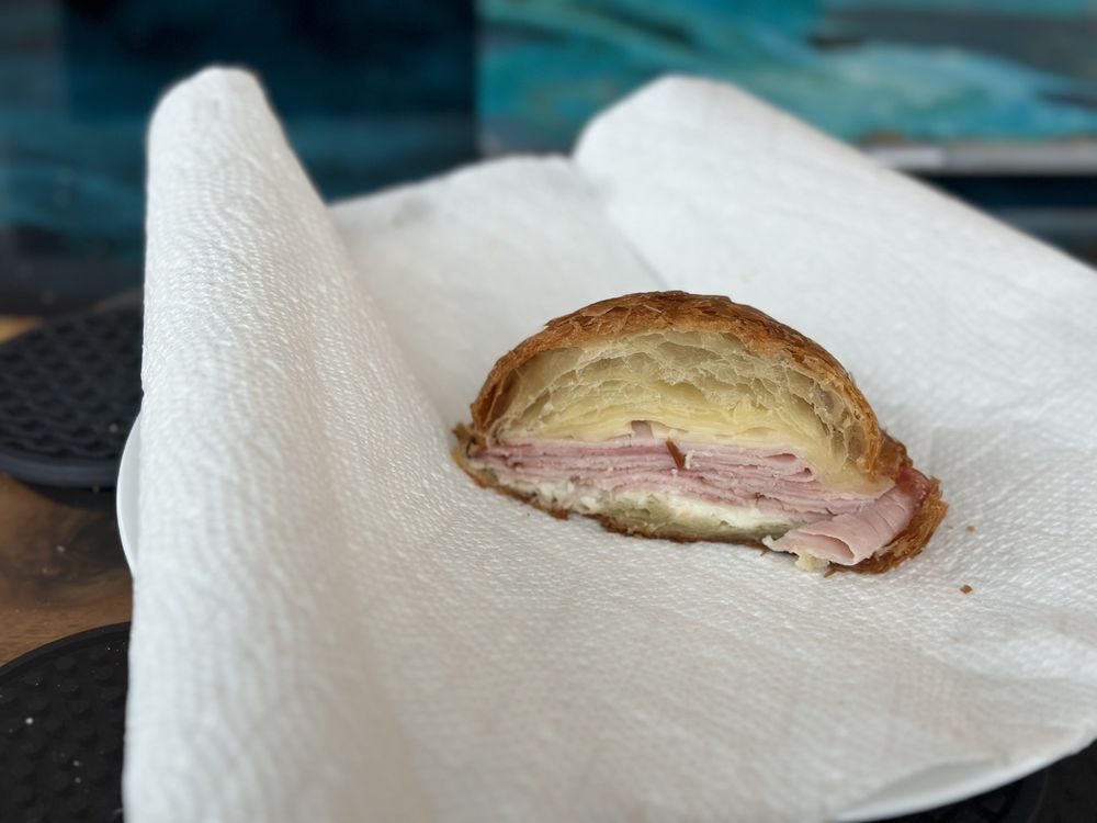 Ham, swiss cheese, and bechamel on a fresh croissant.